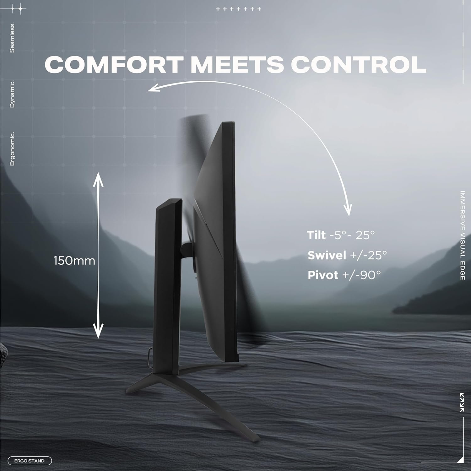 Adjustable stand with 150mm height, tilt (-5° to 25°), pivot (±90°), and swivel (±25°). Acer Display Widget software enables easy customization and multiple game modes. Acer Display Widget for Easy modification of monitor settings through this utility software, Different game modes for Better viewing experience I Integrated AMD FreeSync technology eliminate screen tearing, while minimizing lag and latency and delivers very smooth gaming experiences.