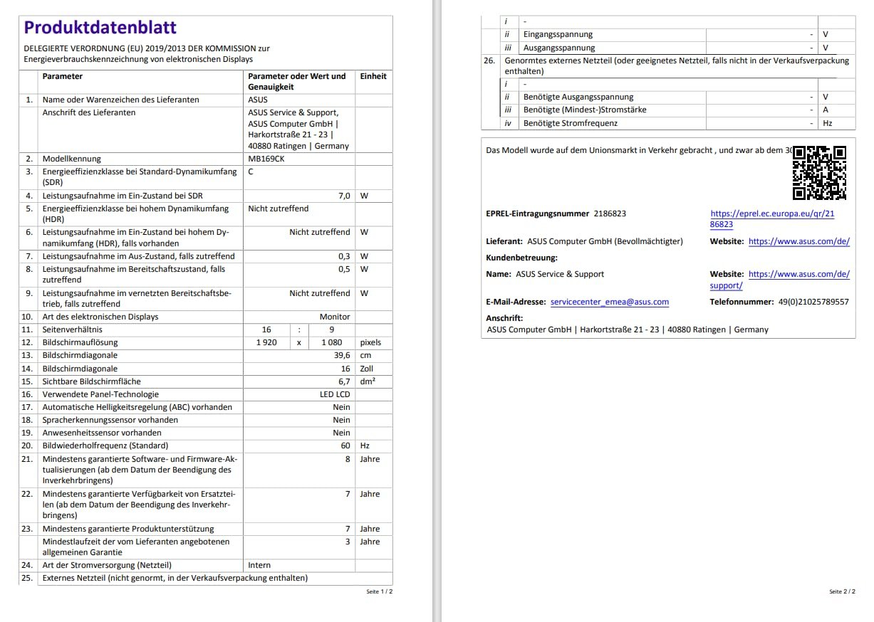 ASUS ZenScreen MB169CK Portable USB Monitor – 16-Inch Full HD, IPS, Dual USB Type-C, Flicker-Free, Blue Light Filter, Anti-Glare, 360° Kickstand